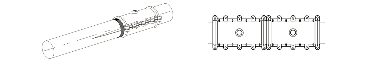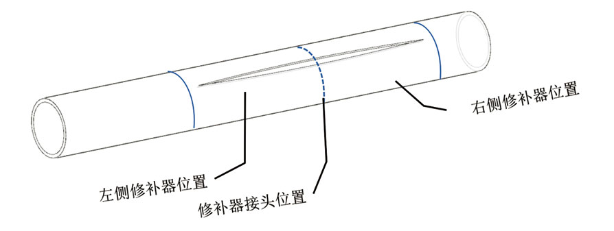 1、先測量管道創(chuàng)口長度,測算相應(yīng)修補器的長度和數(shù)量,大致畫出修補器接頭部位也就是串聯(lián)器的安裝位置。